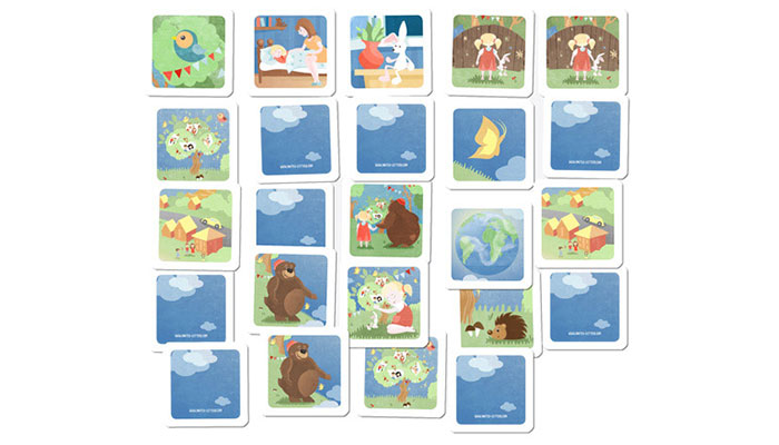 "Ein robustes Kartenspiel, was selbst den Anknabberversuchen unserer kleinen Zwillinge standgehalten hat und von unserer 4-jährigen Tochter geliebt wird, weil sie sich auf den Karten wiedererkennt und den Bären Naby, der auch im Buch vorkommt ganz toll findet. "