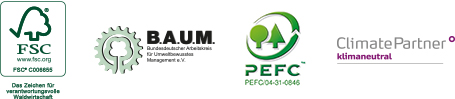 Wir tun unser Möglichstes, gerade jetzt, da der Klimawandel immer mehr zum Thema wird, umwelt- und ressourcenschonend zu produzieren. FSC, PEFC, Recycling und klimaneutrales Drucken sind für uns selbstverständlich. Viele unserer Bedruckstoffe sind nach PEFC und FSC zertifiziert. Auch verwenden wir überwiegend umweltfreundliche Druckfarben und setzen immer mehr auf Strom aus Sonnenenergie.